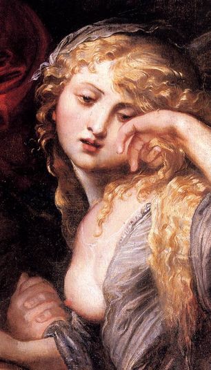 これはマグダラのマリア。ルーベンスの「嘆き」(キリスト哀悼)の場面の部分です。珍しくかわいい顔立ちだよね。ルーベンス体型の女性らしからぬ顔。これは1602年の作品だからルーベンスの初期の作品。涙も描かれてるのです。