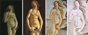 左3作品は、サンドロ・ボッティチェッリのヴィーナスとヴィーナスの誕生で、右がギュスターヴ・モロー のボッティチェッリの模写。